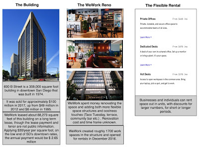 Prospectus: Pages Note that all we have is the company's word on the timing and its definition of contribution margin plays fast and loose with operating expenses. To illustrate how the WeWorks model works, consider 600 B Street in San Diego, which is an office building that WeWork acquired, renovated and opened in 2017: