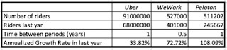 In short periods, these companies have grown from nothing to becoming among the largest players in their markets, at least in terms of revenues. While this focus on revenue growth is not surprising, since it is at the heart of their stories, it is revealing that all of the companies spend as much, if not, more time talking about growth in their revenue units (Uber riders, WeWork members and Peloton subscribers).