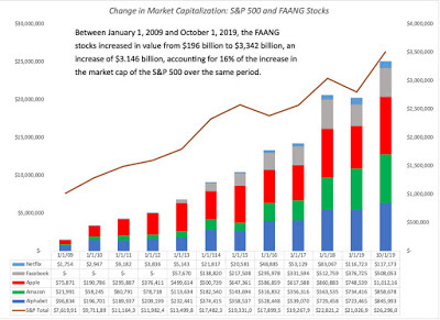 As you can see, the last decade has seen a phenomenal surge in the market capitalizations of the FAANG stocks, with the $3.15 trillion increase in their market capitalizations alone explaining more than one-sixth of the increase in market capitalization of the S&P 500. In the eyes of pessimists, that gives rise to two concerns, one relating to the past and one to the future. Looking back, they argue that many investors have been largely left out of the market rally, especially if their portfolios did not include any of the FAANG stocks. Looking forward, they posit that any weakness in the FAANG stocks, which they argue is largely overdue, as they face pressure on legal and regulatory fronts, will translate into weakness in the market.