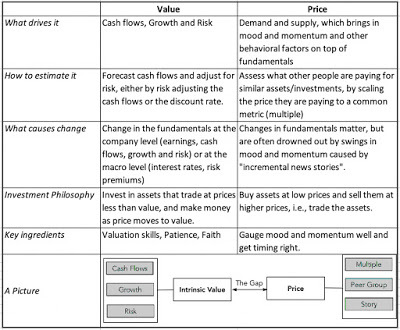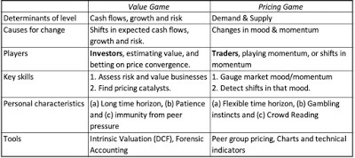 Finally, I lay out my rationale for differentiating between value and price, and why pricing an asset can give you a very different number than valuing that asset, and why much of what passes for valuation in the real world is really pricing.