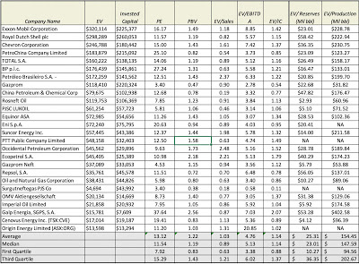 Download spreadsheetThe median oil company equity trades at about 13 times earnings, and was a business, at about the value of its annual revenues, and the market seems to be paying about $23 for every barrel of proven reserves of oil (or equivalent). In the table below, I have priced Aramco, using all of the metrics, and at the median and both the first and third quartiles: