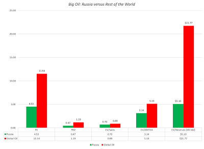 You can already see that if you are looking at how to price Aramco, the metric on which you base it on will make a very large difference: If you price Aramco based on its revenues of $356 billion or on its book value of equity of $271 billion, its value looks comparable or slightly higher than the value of Exxon Mobil and Royal Dutch, the largest of the integrated oil companies. That pricing, though, is missing Aramco’s immense cost advantage, which allows it to generate much higher earnings from the same revenues. Thus, when you base the pricing on Aramco’s EBITDA of $224 billion, you can see the pricing rise to above a trillion and if you shift to Aramco’s net income of $111 billion, the pricing approaches $1.5 trillion. The pricing is highest when you focus on Aramco’s most valuable edge, its control of the Saudi oil reserves and its capacity to produce more oil than any other oil company in the world. If you base the pricing on the 10.3 billion barrels of oil that Aramco produced in 2018, Aramco should be priced above $1.5 trillion and perhaps even closer to $2 trillion. If you base the pricing on the 265.9 billion barrels of proven reserves that Aramco controls for the next 40 years, Aramco’s pricing rises to sky high levels.If you are a potential investor, the pricing range in this table may seem so large, as to make it useless, but it can still provide some useful guidelines. First, you should not be surprised to see the roadshows center on Aramco’s strongest suits, using its huge net income (and PE ratios) as the opening argument to set a base for its pricing, and then using its reserves as a reason to augment that pricing. Second, there is a huge discount on the pricing, if just reserves are used as the basis for pricing, but there are two good reasons why that high pricing will be a reach:Production limits: Aramco not only does not own its reserves in perpetuity, with the rights reverting back to the Saudi government after 40 years, with the possibility of a 20-year extension, if the government decides to grant it, but it is also restricted in how much oil it can extract from those reserves to a maximum of 12 billion barrels a year.Governance and Risk: We noted, earlier, that Aramco’s flaws: the government’s absolute control of it, the country risk created by its dependence on domestic production and the political risk emanating from the possibility of regime change. To see how this can affect pricing, consider how the five companies on the integrated oil peer group that are Russian (with Gazprom, Rosneft and Lukoil being the biggest) are priced, relative to the global average: