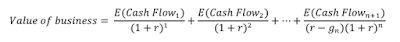 Extended to a publicly traded company, with a potential life in perpetuity, this value can be written as: