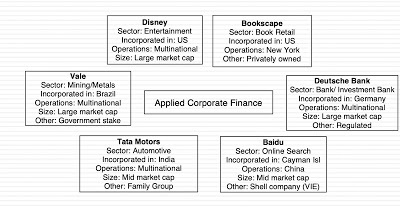 Chapters: Applied Corporate Finance Book, Sessions: Class sessionI am not a believer in theory, for the sake of theory, and everything that we do in this class will be applied to real companies, and I will use six companies (Disney, Vale, Tata Motors, Deutsche Bank, Baidu and a small private bookstore called Bookscape) as lab experiements that run through the entire class.