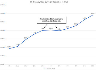 Treasury.gov: Daily Treasury yield curveThe yield curve has been upward sloping, with yields on longer term maturities higher than yields on short term maturities, every year, but it has flattened out the last two years. On December 4, 2018, the yields on treasuries of different maturities were as follows: