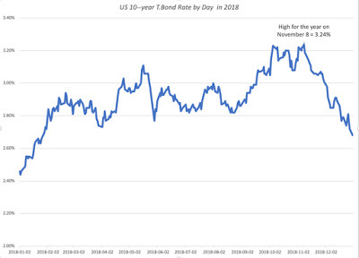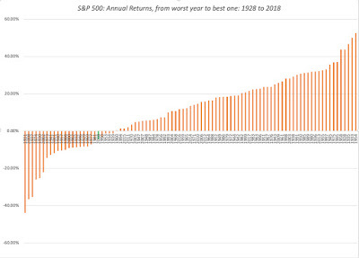 I know that this is small consolation, if you lost money last year, but looking at annual returns on stocks in the last 90 years, there have been twenty years with more negative returns. In short, it was a bad year for stocks, but it felt far worse for three reasons. First, after nine good years for the market, investors were lulled into a false sense of complacency about the capacity of stocks to keep delivering positive returns. Second, the negative returns were all in the last quarter of the year, making the hit seem larger (from the highs of September 2018) and more immediate. Third, the intraday and day-to-day volatility exacerbated the fear factor, and those investors who reacted by trading faced far larger losses.