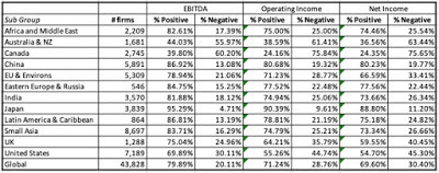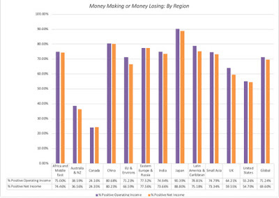 Data, by countryThe push back, even on this simplistic measure, is that just as one swallow does not a summer make, one year of profitability is not a measure of continuing profitability. Thus, you could expand this measure to not just look at average income over a longer period (say 5 to 10 years) and even add criteria to measure sustained profitability (number of consecutive profitable years). No matter which approach you use, you still will have two problems. The first is that because this measure is either on (profitable) or off (money losing), it cannot be used to rank or grade firms, once they have become profitable. The other is that making money is only the first step towards establishing viability, since the capital invested in the firm could have been invested elsewhere and made more money. It is absurd to argue that a company with $10 billion in capital invested in it is successful if it generates $100 in profits, since that capital invested even in treasury bills could have generated vastly more money.