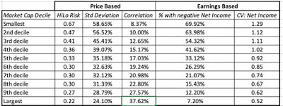 IV. Your risk measurement will depend on how and why you invest and your time horizon: Broadly speaking, there are three groups of metrics that you can use to measure the risk in an investment. Price Measures: If an asset/investment is traded, the first set of metrics drawn on the price path and what you can extract from that path as a measure of risk. There are many in investing who bemoan the Markowitz revolution and the rise of modern finance, but one of the byproducts of modern portfolio theory is that price-based measures of risk dominate the risk measurement landscape. Earnings/Cashflow Measures: There are many investors who believe that it is uncertainty about earnings and cash flows that are a true measure of risk. While their argument is that value is driven by earnings and cash flows, not stock price movements, their case is weakened by the fact that (a) earnings are measured by accountants, who tend to smooth out variations in earnings over time and (b) even when earnings are measured right, they are measured, at the most, four times a year, for companies that have quarterly reporting, and less often, for firms that report only annually or semi-annually.Risk Proxies: Some investors measure the risk of an asset, by looking at the grouping it belongs to, arguing that some groupings are more risky than others. For instance, in the four decades since technology stocks became part of the market landscape, "tech" has become a stand in for both high growth and high risk. Similarly, there is the perception that small companies are riskier than larger companies, and that the market capitalization, or level of revenues, should be a good proxy for the risk of a company.While I will report on each of these three groups of risk measures in this post, you can decide which measure best fits you, as an investor, given your investment philosophy.
