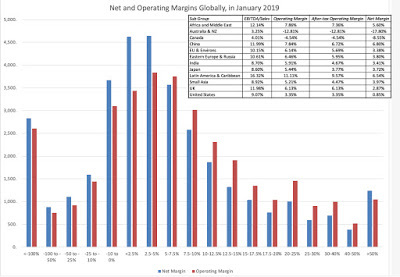 The regional comparisons of margins are difficult to analyze because they reflect the fact that different industries dominate different regions, and margins vary across industries. You can get the different margin measures broken down by industry, in January 2019, for US firms by clicking here. You can download the regional averages using the links at the end of this post.