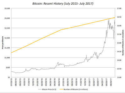 When it comes to any finance-related questions, I am fair game, and those questions usually span the spectrum, from what I think about Warren Buffett (or why I don't agree with everything he says) to whether tech stocks are in a bubble (a perennial question for worry warts). In the last few months, though, I have noticed that I have been getting more and more questions about crypto currencies, especially Bitcoin and Ether, and whether the price surges we have seen in these currencies are merited. While I have an old post on bitcoin, I have generally held back from talking about crypto currencies in this blog or in my other teaching for two reasons. First, I find that any conversation about bitcoin quickly devolves into an argument rather than a discussion, since both proponents and critics tend to hold strong views on its use (or uselessness). Second, I find that some of the technical underpinnings of bitcoin, ether and other cryptocurrencies are beyond my limited understanding of block chains and technology and I risk saying something incredibly ill informed. While both reasons still persist, I am going to throw caution to the winds and put down my thoughts about the rise, the mechanics and the future, at least as I see it, of crypto currencies in this post.