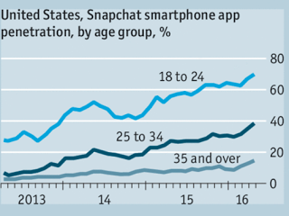 Source: The EconomistWith an emphasis on user intensity over users: Snap's prospectus and public utterances by its founders emphasize user intensity more than the number of users, in contrast to earlier social media companies. This emphasis is backed up by the company's actions: the new features that it has added, like stories and geofilters, seem designed more to increase how much time users spend in the app than on getting new users. Some of that shift in emphasis reflects changes in how investors perceive social media companies, perhaps sobered by Twitter's failure to convert large user numbers into profits, and some of it is in Snap's business model, where adding users is not costless (since it has to pay for server space). These assumptions, in turn, drive my forecasts of revenues, margins and reinvestment. In my story, I don't see Snap reaching revenues of the magnitude delivered by Google and Facebook, the two big market players in the game, settling instead for smaller revenues. If Snap is able to hold on to its target market (young, tech savvy and visually inclined) and keep its users engaged, I think Snap has a chance of delivering high operating profit margins, perhaps not of the magnitude of Facebook today (45% margin) but close to that of Google (25% margin). Finally, its reinvestment will take the form of acquisition of technology and server space to sustain its user base, but by not trying to be the next Facebook, it will not have to over reach. Is there substantial risk that the story may not work out the way I expect it to? Of course! While I will give Snap a cost of capital of close to 10% (and in the 85th percentile of US companies), reflective of its online advertising business, I will also assume that there remains a non-trivial chance (10%) that the company will not make it. The picture below captures my story and the valuation inputs that emerge from it: