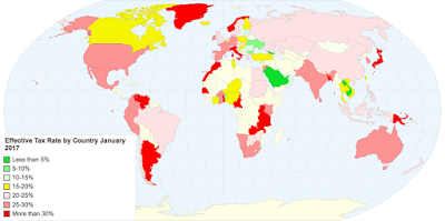 Link to live mapAt least, based upon the data on taxes paid in 2017, US companies measure up well against the rest of the world, in terms of paying taxes, with only Japanese companies paying significantly more in taxes; Indian and Australian companies pay about what US companies do and the rest of the world pays less.