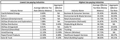 The entire list can be downloaded here. Again, there are many reasons for the differences, with companies that generate more income from foreign operations paying lower taxes than domestic companies being a primary one. It is also true that the US tax code is filled with sector-specific provisions that provide special treatment for these sectors in the form of generous tax deductions. Most of these tax deductions (like higher depreciation allowances) show up as expenses in the income statement and the taxable income should already reflect them and so should the effective tax rate, but in some cases it does show up as a marginal tax rate.