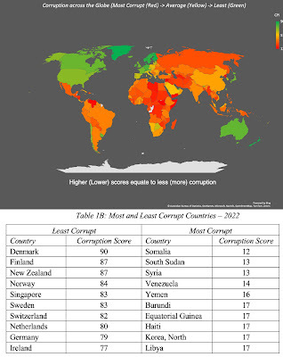 Corruption is a social ill that manifests itself as a cost to every business that is exposed to it. As anyone who has ever tried to get anything done in a corrupt setting will attest, corruption adds layers of costs to routine operations, thus become an implicit tax that companies pay, where the payment instead of going to the public exchequer, finds its way into the pockets of intermediaries. Transparency International measures corruption scores, by country, across the world and their 2022 measures are in the map below: