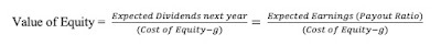 Alternatively, you can assume that there is earnings growth and that companies earn returns on equity equal to their costs of equity, you arrive at the same result: