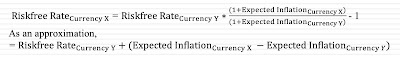 To the extent that currency risk adds to the operating risk of a company, it is, in my view, already embedded in the equity risk premiums that I have computed in the last section. After all, countries with unstable governments, plagued by war and corruption, also have the most unstable currencies. The other reason to tread lightly with currency risk is that for investors with global portfolios, it becomes diversifiable risk, as some companies benefit as a currency strengthens or weakened more than expected and others lose for exactly the same reason.My advice to you when you make a currency choice for your analysis is that you pick a currency that you are comfortable working with, but then make sure that you stay consistent with that currency in all of your estimates. Thus, if you choose to value a Russian company in Euros, rather than rubles, make sure that your growth rates reflect inflation in the Euro zone, but that you risk premiums and real growth reflect its Russian operations.= (1.038)* (1.135/1.03) -1 = .1438 or 14.38%)