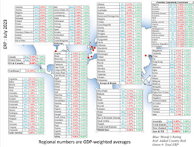 Democracy, Violence, Corruption and Legal System Scores, by Country, in July 2023Sovereign Ratings and CDS Spreads for Countries in July 2023Equity Risk Premiums, by Country, in July 2023Currency DataExpected Inflation and Riskfree RatesAswath Damodaran's Blog