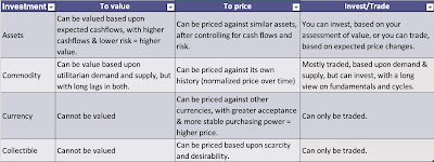 In my discussion so far, you will notice that I have stayed away from talking about currency risk in my equity risk premium discussion and from currency choices in investment analysis. I have my reasons.