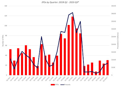 In 1980, IBM was the largest market cap company in the world, but eight of the top ten companies were oil or manufacturing companies. With each decade, you can see the effect of regional and sector performance in the previous decade; the 1990 list is dominated by Japanese stocks, reflecting the rise of Japanese equities in the 1980s, and the 2000 list by technology and communication companies, benefiting from the dot-com boom. Looking at the top ten companies in 2020 and 2023, you see the dominance of technology companies, many of which sell products that you cannot see, often in production facilities that are just as invisible. The other development that has pushed the intangible discussion to the forefront is a sea change in the characteristics of companies entering public markets. While companies that were listed for much of the twentieth century waited until they had established business models to go public, the dot-com boom saw the listing of young companies with growth potential but unformed business models (translating into operating losses), and that trend has continued and accelerated in this century. The graph below looks at the revenues and profitability of companies that go public each year, from 1980 to 2020:
