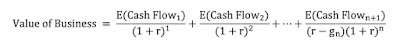 Thus, the intrinsic value of an asset is the present value of the expected cash flows on it, over its lifetime. When valuing a business, where cash flows could last for much longer (perhaps even forever), this equation can be adapted: