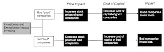 Almost two thirds of impact investors believe that they can eat their cake and have it too, expecting to earn as much or more than a risk-adjusted return, even as they do good. That delusion running deepest among pension funds, insurance companies, for-profit fund managers and diversified financial investors, who also happen to account for 78% of all impact investing funds. If having a positive impact on society, while earning financial returns, is what characterizes impact investing, it can take one of three forms:Inclusionary Impact Investing: On the inclusionary path, impact investors seek out businesses or companies that are most likely to have a positive impact on whatever societal problem they are seeking to solve, and invest in these companies, often willing to pay higher prices than justified by the financial payoffs on the business. Exclusionary Impact Investing: In the exclusionary segue, impact investors sell shares in businesses that they own, or refuse to buy shares in these businesses, if they are viewed as worsening the targeted societal problem.Evangelist Impact Investing: In the activist variant, impact investors buy stakes in businesses that they view as contributing to the societal problem, and then use that ownership stake to push for changes in operations and behavior, to reduce the negative social or environmental impact.The effect of impact investing in the inclusionary and exclusionary paths is through the stock price, with the buying (selling) in inclusionary (exclusionary) investing pushing stock prices up (down), which, in turn, decreases (increases) the costs of equity and capital at these firms. The changes in costs of funding then show up in investing decisions and growth choices at these companies, with good companies expanding and bad companies shrinking.