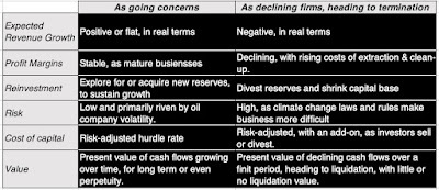 Impact investing has always been about changing investor perceptions of energy companies, more than just prices. In fact, some impact investors have argued that their presence in the market and advocacy for alternative energy has led investors to change their views about fossil fuel companies, shifting from viewing them as profitable, cash-rich businesses with extended lives, to companies living on borrowed time, looking at decline and even demise. In intrinsic valuation terms, that shift should show up in the pricing, with lower value attached to the latter scenario than the former: