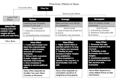 Cybertrucks: The easiest news items to weave into the Tesla narrative is the Cybertruck effect. If the advance orders are an indication of pent-up demand and the Cybertruck represents an extension into a hitherto untapped market, it does increase Tesla's revenue growth potential. There are two potential negatives to consider, and Musk referenced them during the course of the most recent earnings call. The first is that, even with clever design choices, at their rumored pricing, the margins on these trucks will be lower than on higher-end offerings. The other is that the Cybertruck may very well require dedicated production facilities, pushing up reinvestment needs. If Cybertruck sales are brisk, and the demand is strong, the positives will outweigh the negatives, but if the buzz fades, and it becomes a niche product, it may very well prove a distraction that reduces value. The value added by Cybertrucks will also depend, in part, on who buys them, with Tesla gaining more if the sales comes from truck buyers, coming from other companies, than it will if the sales comes from Tesla car buyers, which will cannibalize their own sales.FSD: As I look at the competing arguments about Tesla's FSD research, it seems clear to me that both sides have a point. On the plus side, Tesla is clearly further along this road than any other company, not only from a technological standpoint, but also from business model and marketing standpoints. While I do not believe that charging $12,000 for FSD as an add-on will create a big market, lowering that price will open the door not only to software sales to Tesla drivers, but perhaps even to other carmakers. In addition, it seems clear to me that the Tesla robotaxi business has now moved from possible to plausible on my scale, and thus merits being taken seriously. On the minus side, I do agree that the world is not quite ready for driverless cars, on scale, and that rushing the product to market can be catastrophic. Price cuts: The Tesla price cuts have led to a divide among Tesla bulls, with some pointing to it as the reason for Tesla's recent pricing travails and others viewing it as a masterstroke advancing it on its mission of global domination. To decide which side has the more realistic perspective, I decided to take a look at how price cuts play out in value for a generic company. The first order effect of a price cut is negative, since lowering prices will lower margins and profits, and it is easy to compute. It is the second order effects that are tricky, and I list the possibilities in the figure below, with value consequences: