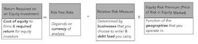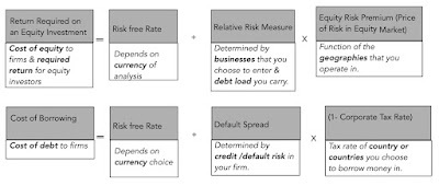 In investing and corporate finance, we have no choice but to come up with measures of risk, flawed though they might be, that can be converted into numbers that drive decisions. In corporate finance, this takes the form of a hurdle rate, a minimum acceptable return on an investment, for it to be funded. In investing, it becomes a required return that you need to make an investment; you buy investments if you believe that you can make returns greater than their expected return and you sell investments if not. In this section, I will begin with a breakdown of risk's many components and use that structure to develop a framework for assessing the risk-adjusted required return on an investment.
