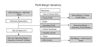 Profit Margins Comparing absolute profits across companies and across time can be difficult, since larger firms will generate more profits than smaller ones, all else held equal. To make comparisons, profits are scaled to common metrics, with revenues and book value of investment being the most common scalar. When profits are scaled to revenues, you get margins, and as with absolute earnings, margins come in various forms, as can be seen below: