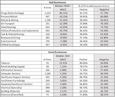 Note that I have steered away from the fuzzier phrases, such a "great management", which could mean everything or nothing, or "ESG", where goodness is not only in the eye of the beholder, but finding a link to anything that drives value resembles a wild goose chase.