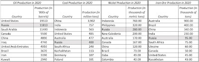 While Russia's share of the global economy is small, it does have a significant standing in the natural resource space, as a leading producer and exporter of oil/gas, coal and nickel, among other commodities. Ukraine is also primarily a natural resource producer, especially iron ore, albeit on a smaller scale.
