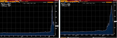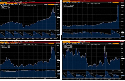 In times of trouble, the first to panic are often lenders to the entities involved, and in today's markets, the extent of the reaction to country-level troubles can be captured in real time in the sovereign CDS (Credit Default Swap) markets. The graph below shows the sovereign spreads for Russia and Ukraine in the weeks leading up and including the conflict: