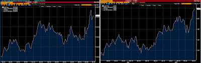 In a market already concerned about expected inflation, the rise in commodity prices operated as fuel on fire, and pushed expectations higher. In the graph below, I list out two measures of expected inflation, one from a inflation expectations ETF (ProShares Inflation Expectation ETF) and the other from the Federal Reserve 5-year forward inflation measure, computed as the difference between treasury and TIPs rates.