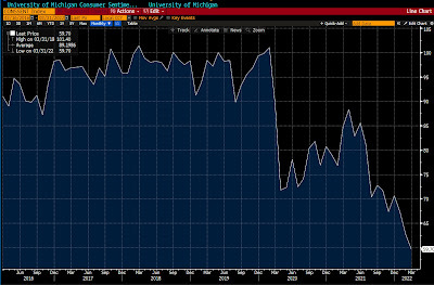 The question that hangs over not just markets but economic policy makers is how this crisis will affect global economic growth and prospects. It is too early to pass final judgment, but the early indications are that it has dented consumer confidence, as the latest reading from the University of Michigan consumer survey indicates: