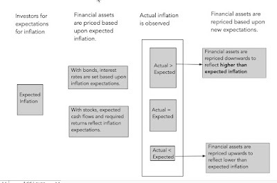 Investors who are old enough to remember the 1970s point to it as a decade of high inflation, but that is only with the benefit of hindsight. At the start of that decade, investors had no reason to believe that they were heading into a decade of higher inflation, and initial signs of price increases were attributed to temporary factors (with OPEC being a convenient target). In fact, expected inflation lagged actual inflation through much of the decade, and the damage done to financial asset returns that decade came as much from actual inflation being higher than expected inflation, period after period, as from higher inflation.