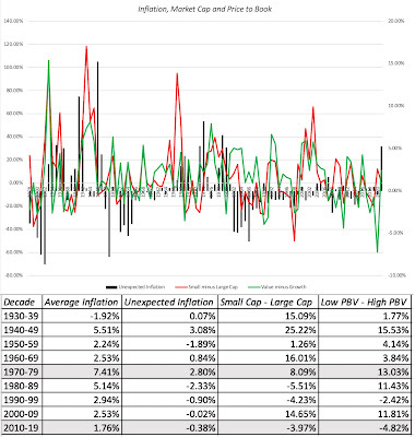 Looking BackThere are lessons that can be learned by looking at the past, about how inflation affects different groupings of companies, though there is the danger of over extrapolation. In this section, I look first at how classes of stocks have done over the decades, and relating that performance to inflation (expected and unexpected). I then examine how equities have performed in the less than five months of 2022, where inflation has returned to the front pages.