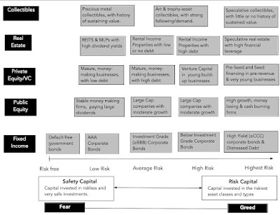 To put risk capital in perspective, it is best to start with a definition of risk that is comprehensive and all-inclusive, and that is to think of risk as a combination of danger (downside) and opportunity (upside) and to consider how investments vary in terms of exposure to both. In every asset class, there is a range of investment choices, with some being safer (or even guaranteed) and others being riskier.