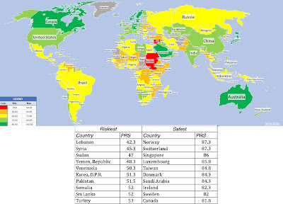 Based on the PRS composite risk measures, Africa remains the most risky region of the world for businesses to operate in, whereas Northern Europe, North America and Australia offer the most safety.