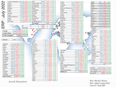 It has been my practice for the last two decades to take a detailed look at how risk varies across countries, once at the start of the year and once mid-year. In most years, the differences between the two updates are small, and often ignorable, but this year's update brings significant changes for many reasons. The first is the retreat of risk capital, which I talked about in my last post, not only affects the flow of capital and repricing of the riskiest assets (high yield bonds, money losing companies) within each asset class, but also has consequences for the flow of capital across geographies, with riskier countries feeling the effect more than safer countries. The second is that this has been a consequential year for country risk shifts, with Russia's invasion of Ukraine upending risk not only for those countries, but also in the region, and tumult in Sri Lanka and Pakistan playing out as risk to investors in both countries.