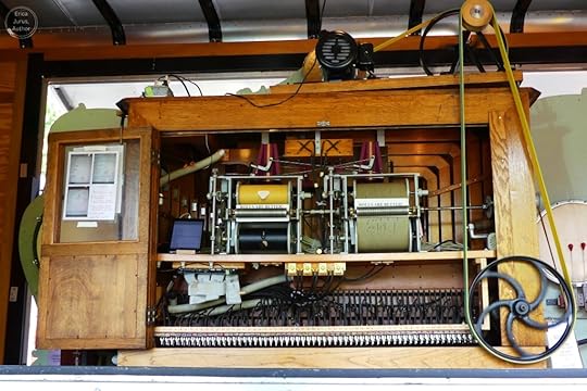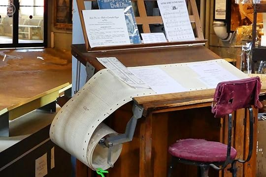 A desk at the Herschell Factory where music pieces were arranged and marked onto rolls of paper, to be transferred by punches to the actual music rolls, as seen below – photo by E. Jurus, all rights reserved