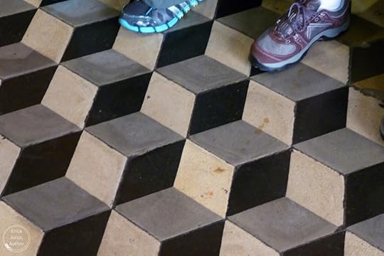 Visual hoaxes are just as much fun. I captured a surprising one in the Church of Santo Domingo in Lima, Peru. It’s one of the tiled floors inside, and so effective a piece of trompe-l’oeil that I included some shoes in the photo at the top of this post to help you understand the optical illusion.