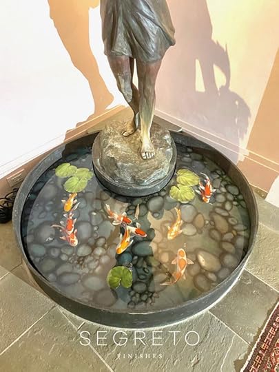 What do you do if your built-in fountain in your entrance of your high rise won’t work? Rather than ripping it out and having to redo the floors, we painted a water feature on an inset board placed inside this fountain’s base. The rocks, fish, and water are all a painted illusion. By using a special coating system that layers the clear, a perception of depth was created! No need to feed these Koi!