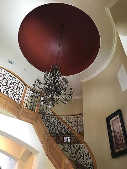 Before:The original foyer had many different elements which stopped your eye including the stained wood, red dome and contrasting colors on the walls and ceilings. Collaborating with Monica and Janie, we came up with a finish scheme to simplify and create elegance while being mindful of the client’s budget priorities.