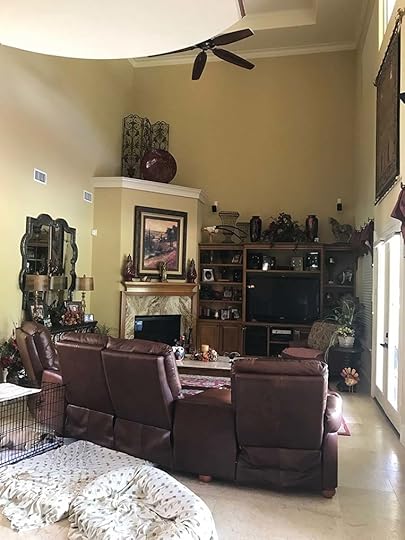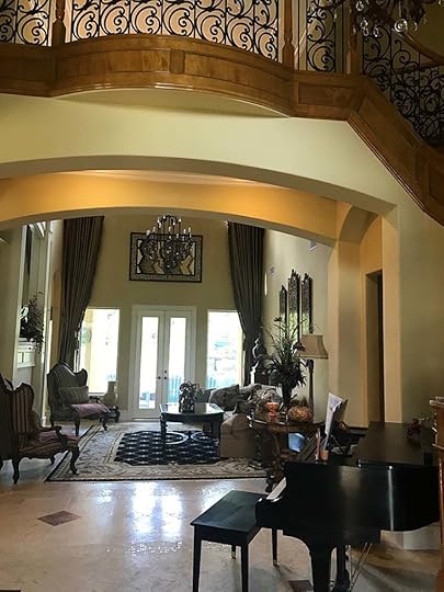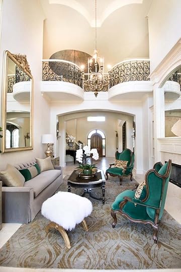 Before: Walking through the staircase is a dramatic two story formal living room with a breathtaking view of the backyard.