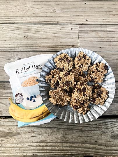 1 large over ripe banana *makes about 8 cookies1 cup of rolled oats or quick oats ( I used Trader Joes Rolled Oats)