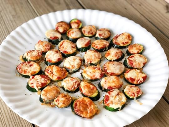 Zucchini (1 large zucchini makes about 10 bites) Tomato sauce – any will work, I like MarinaraShredded Mozzarella cheeseOlive oilSalt and pepper Optional toppings- Oregano, Crushed Red Pepper, Pepperoni, veggies