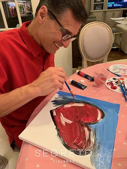 My son Matthew actually inspired the craft this year. He took a date to one of those painting wine nights and this is what his masterpiece looked like. I decided to use it as a back drop for our Valentine sorie and inspiration for our craft. Join me next week to see how to create a family paint night, sweet heart style!! XO Leslie