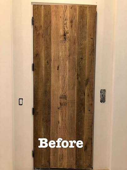 Jerry is a master of taking a surface and totally transforming it!! Take this door——lovely wood and reclaimed, but………. not the finish Architectural Designer Sarah West had in mind.