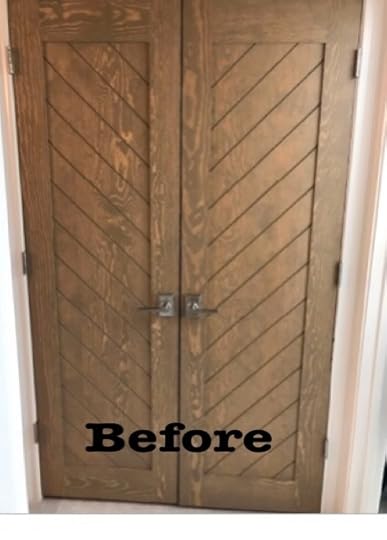 The door to this pantry now looks more interesting and aged after his magic. This technique was done without stripping and bleaching the wood first, which not only is a cost-savings for the client but also less mess and smell.