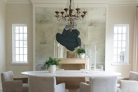 Her out of the box creativity is what creates unique looks for each of her clients. The art piece created on top of this antique mirror forms a unique conversation focal wall, perfect for this dining space!